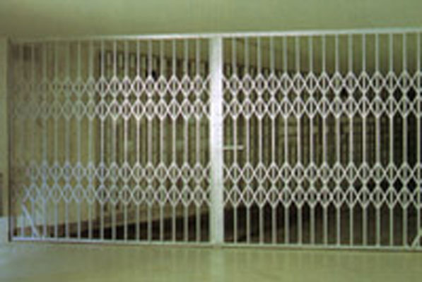 Die Ausführung des Gitters erfolgt ein- oder zweiflügig mit 2 oder 3 Scherenreihen. Die untere Führungsschiene ist zur Seite klappbar.